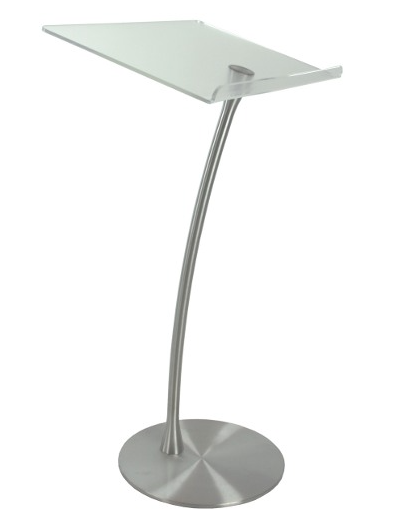 All three lecterns feature a brushed stainless steel column and base with antireflective film added on the reading surface of the two 28" wide lecterns.