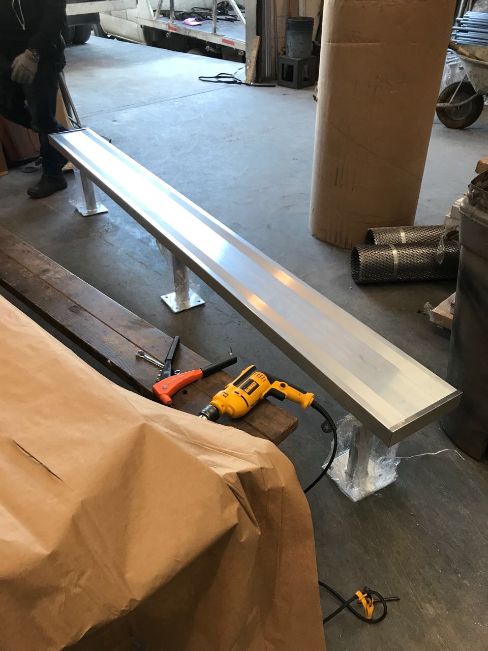 ALUMINUM TEAM BENCH Bench without Back Perfect for your soccer, football, or sports field, this sports bench offers seating for players and spectators alike. Portable and/or Surface Mount these team benches utilize 2" thick x 10"W extruded aluminum alloy seats with end caps coated with a clear anodized finish for durability. Seat supports are constructed of welded mill finish aluminum angle. The supports are spaced at 6' centers and joined by a bolted strut angle to provide proper strength and stability. Hardware included.
