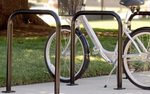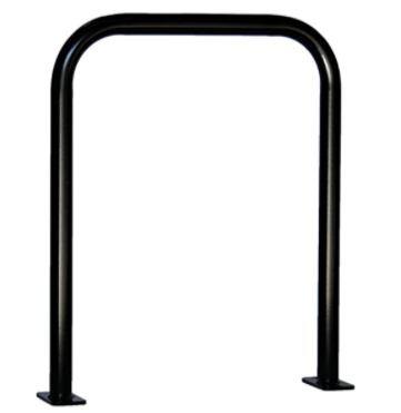 Inverted U-style bike rack accommodates two bikes. Made from 1.66" 12-gauge schedule 40 steel tubing. Finished in a double-coat polyester TGIC coating. Simple and affordable solution.