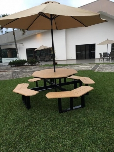 Octagon Picnic Table can seat up to eight people at a time and is perfect for family meals on your patio or in your backyard. Dinner in the midst of nature