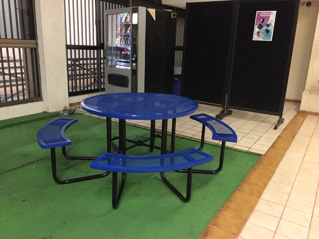 Portable Metal Mesh Picnic Tables are ideal for high-traffic seating areas in parks, campuses, snack bars and more. Picnic Tables are made using heavy-gauge metal mesh with a paint automotive with coating on benches and tabletop. This protective coating creates a smooth, high-gloss surface that stays cool to the touch for comfortable seating even in the sun.
