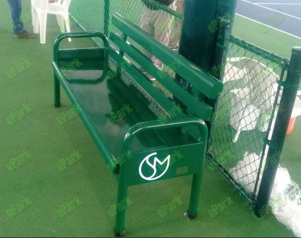 Tennis bench with armrests without roof, length 69 inches, height of bench 29.1 inches, made of steel, powder coated anti-corrosion thermostatic paint.