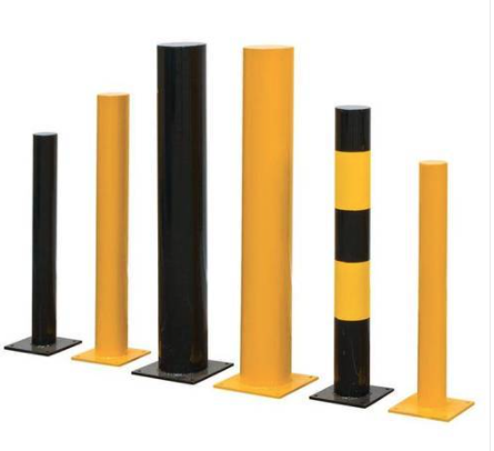 We offer bollards made of high quality steel in yellow black colors with reflective tape with plate or preparation to drown